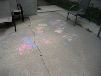 We've been playing with sidewalk chalk a lot...especially loving our 3-D chalk set. I tried taking a picture through the special glasses, but it doesn't work.